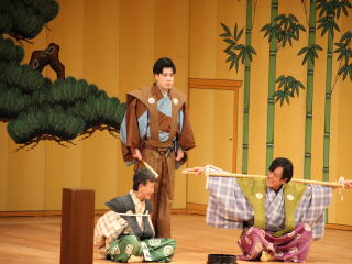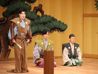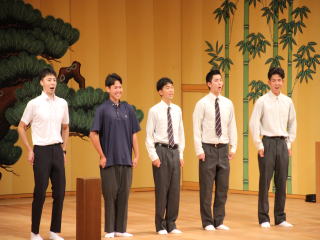 10月2日、芸術鑑賞教室をオルテンシアにて開催しました。今回は、「三宅狂言会」による「狂言」を鑑賞しました。狂言「盆山(ぼんさん)」の解説のあと、ワークショップでは、本校生徒と先生が狂言独特の言い回しや歩き方などを行いました。最後に狂言「棒縛(ぼうしばり)」を鑑賞しました。