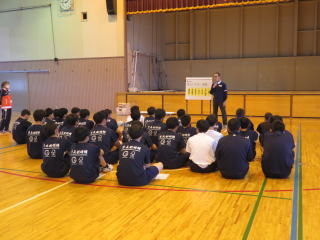 6月6日本校第一体育館で交通安全教室が開催されました。五所川原警察署交通安全課 坂田 氏を講師に「自転車の事故防止」テーマに、本県におけるヘルメットの着用率や来年改正される道路交通法によって自転車にも罰則が適用されるなどのお話をいただきました。