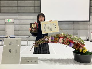 10月25日~26日に福島県を会場に第35回全国産業教育フェア福島大会が行われ、本校からフラワーアレンジメント競技に2名が参加しました。3年生物生産科の山本愛さんが銅賞を獲得しました。