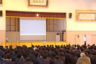 4月8日本校第一体育館で一学期始業式が行われ、全学年が初めて顔をそろえました。