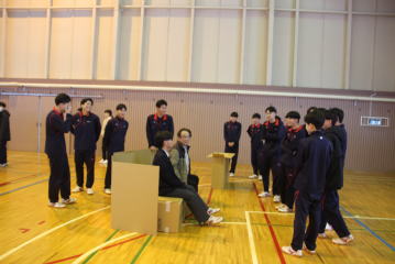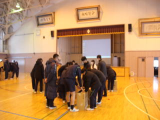 1月14日、避難訓練を行いました。今回は地震を想定しての訓練でした。訓練終了後は五所川原市の職員から段ボールベッドの作成方法を学び、生徒たちも防災意識を確認していました。