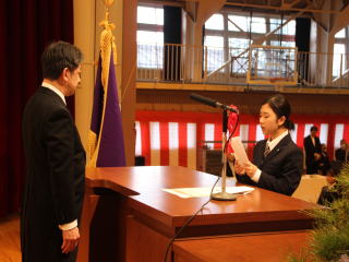 4月7日、本校第一体育館で入学式が行われ、75名の新入生が五所川原農林高校に入学しました。新入生を代表して環境科学科の広木杏奈さんが宣誓を行いました。