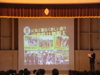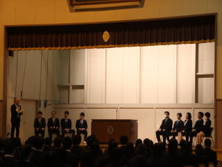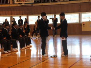 4月7日、本校第一体育館で新任式が行われ、12名の先生方が五所川原農林高校に赴任されました。赴任された先生方から挨拶ののち、生徒会長から歓迎の言葉がありました。