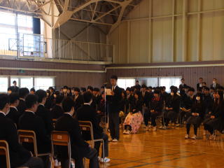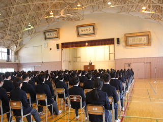 4月8日、本校第一体育館で全校生徒261名がそろい、始業式を行いました。